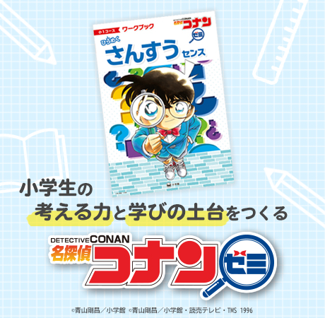 サービス詳細アイコンの説明 全国通信・通学講座カルチャー 名探偵コナンゼミ 全福センター会員特別価格でのご提供です。 コナン君達が楽しく学習をナビゲート! 「考える力」を育てる小学生のための教材です。 基礎学力はもちろん、点数では測れない力が身につくオリジナルカリキュラムが特長です。 これから必要になる「思考力」を楽しく伸ばしていきます。 名探偵コナンゼミ なら ①自信をもって課題に立ち向かう力が伸びていく ②興味を引くテーマを扱うから自分でどんどんやりたくなる! ③出題パターンが豊富だからはじめての問題にも強くなる! ④記述問題が充実しているから自分の言葉で伝える力が伸びる! ⑤思考を整理する練習ができるから自分なりの視点をもつことが できる! 対象:小学1年生~小学6年生 基本データ 住所東京都 お問い合わせ 0120-145-557 利用資格 会員および家族 ご利用方法 このコンテンツを閲覧するにはログインが必要です ※ログインIDとパスワードが不明の方は、ご加入のサービスセンターにご確認ください。 ログイン 未加入の方はコチラ 特典 小1~小6教材定期便通常価格より10%割引(PDF版単品セットの購入割引はありません。) リンク先 【公式ホームページ】名探偵コナンゼミ定期便(お申し込みはこちらから)