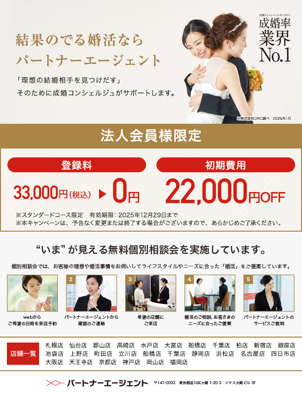 だからパートナーエージェントは成婚率業界No.1。(※)